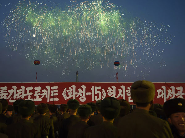 Người dân Triều Tiên tham dự buổi lễ trong "niềm vui lớn và sự phấn khích" trước thành công của vụ phóng tên lửa, "các cuộc khiêu vũ liên hoan" diễn ra tưng bừng khắp thủ đô.
