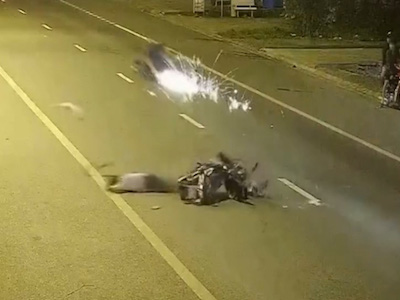 Nam thanh niên điều khiển xe máy trong lúc băng ngang QL20 đã bị xe máy khác chạy với tốc độ cực nhanh tông vào. Nam thanh niên ngã xuống đường, người tông xe và phương tiện bị kéo lê toé lửa hàng chục mét trên mặt đường.