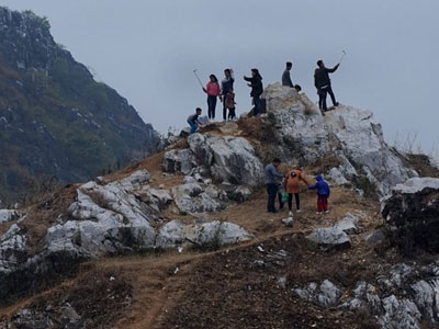 Dịp tết dương lịch 2017, núi Trầm (xã Phụng Châu, Chương Mỹ, Hà Nội) thu hút rất đông giới trẻ Thủ đô. Dù đoạn đường leo khá nguy hiểm nhưng dòng người vẫn lũ lượt lên bằng được 9 đỉnh núi đá vôi để chụp ảnh "tự sướng".