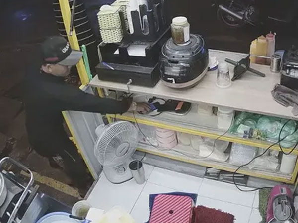 Lợi dụng lúc nhân viên không để ý, gã đàn ông đi xe SH đã trộm điện thoại và nhanh chóng rời khỏi quán trà sữa.