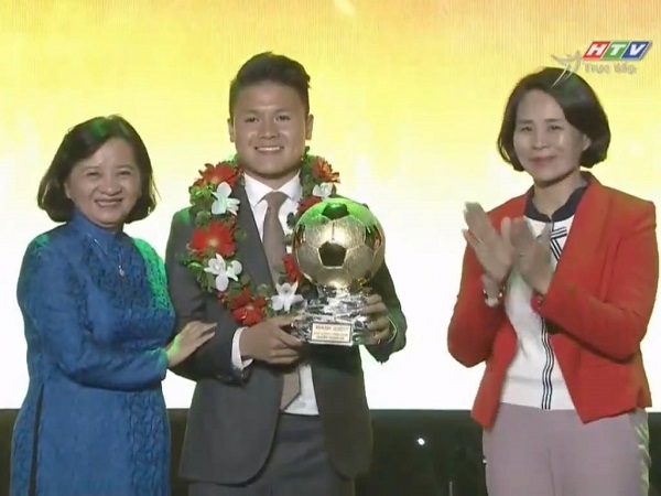 Tiền đạo CLB Hà Nội đoạt giải thưởng cá nhân cao quý nhất bóng đá Việt Nam trong Gala trao giải tại TP HCM tối 22/12.