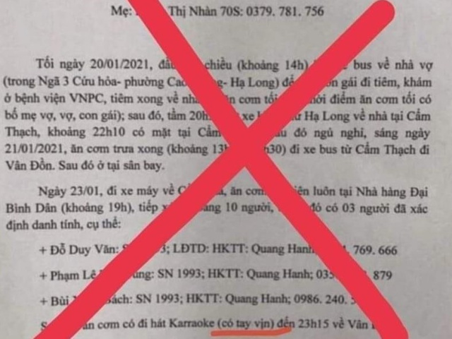 Sở Thông tin - Truyền thông Quảng Ninh cho biết, thông tin bệnh nhân mắc COVID-19 ở Quảng Ninh đi hát karaoke "tay vịn" là sai sự thật.