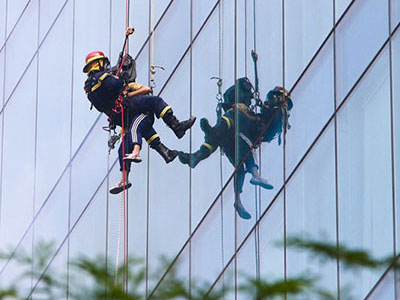 Diễn tập đu dây cứu người từ tầng 26 ở Sài Gòn