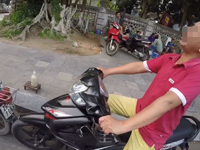 Người phụ nữ đang dừng chờ đèn đỏ thì bất ngờ bị một người đàn ông đi xe máy, không đội mũ bảo hiểm, từ phía sau bóp còi nhiều lần, rồi húc vào đuôi xe của chị, đòi rẽ phải. Mặc dù người phụ nữ đã nói là đèn đỏ nhưng người đàn ông vẫn to tiếng đòi vượt.