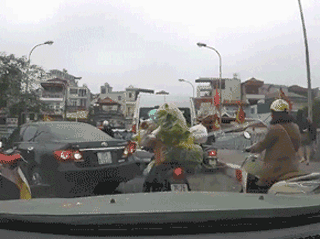 Quay đầu ôtô giữa cầu hẹp vào giờ cao điểm, nữ tài xế còn bước xuống mắng chửi người đi xe máy phía sau.