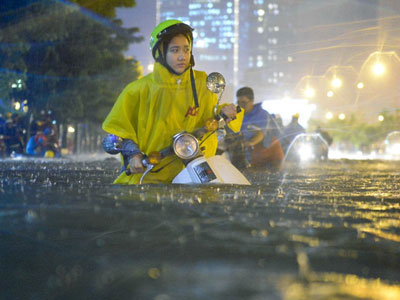 Mưa lớn khắp các tỉnh đồng bằng Bắc Bộ với lượng trên 150mm đã khiến nhiều thành phố bị ngập sâu, có nơi ngang thắt lưng.