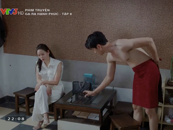 Trong tập 8 Gara hạnh phúc, Quân vô cùng khó chịu khi sếp nữ mò đến tận phòng trọ yêu cầu 'phục vụ'.