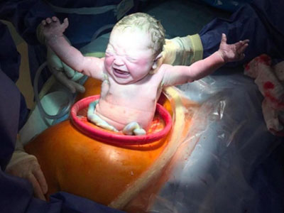 Ảnh bé sinh mổ dang tay chào thế giới gây ngỡ ngàng