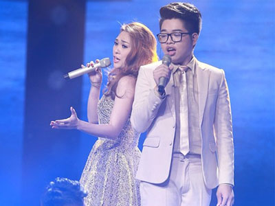 Tiết mục song ca tưng bừng của cô trò Mỹ Tâm khép lại đêm thi đầy màu sắc.
