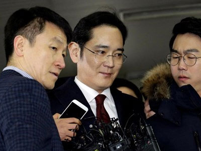 Sáng nay lãnh đạo tập đoàn lớn nhất Hàn Quốc Samsung, ông Jay Y. Lee, đã tới văn phòng công tố đặc biệt Hàn Quốc ở Seul để chờ nghe quyết định của một quan tòa về việc có bắt giữ ông hay không vì cáo buộc tham nhũng đang làm rung chuyển Hàn Quốc.