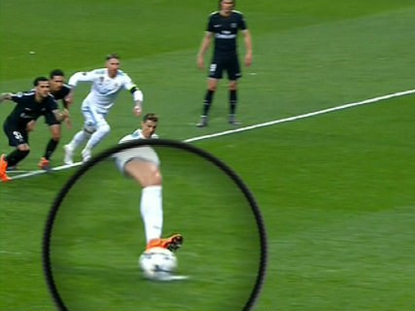 Băng hình cho thấy trái bóng tự dịch chuyển khỏi chấm phạt đền trước khi có sự tác động của Cristiano Ronaldo.