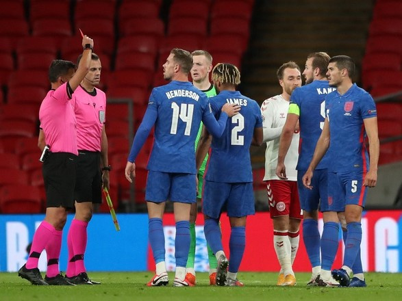 Reece James nhận thẻ đỏ trực tiếp vì hành vi lăng mạ trọng tài sau khi trận đấu giữa tuyển Anh và Đan Mạch kết thúc rạng sáng 15/10 (giờ Hà Nội).