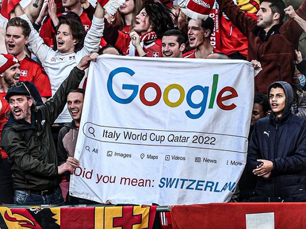 Các cổ động viên Thụy Sỹ đã khiến nỗi đau của Italia thêm lớn khi giăng băng-rôn chế giễu trên khán đài.
