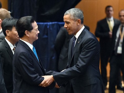 Theo đặc phái viên TTXVN, tối 21/11, tại Kuala Lumpur, Malaysia, Thủ tướng Nguyễn Tấn Dũng đã gặp Tổng thống Mỹ Barack Obama bên lề Hội nghị Cấp cao ASEAN-Mỹ.