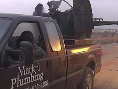 Chiếc bán tải Ford mang logo công ty của một người đàn ông Mỹ sau khi bán cho đại lý đã bất ngờ xuất hiện trong một video của khủng bố IS.