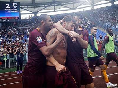 Totti ghi bàn ở phút 93, giúp Roma thắng ngược