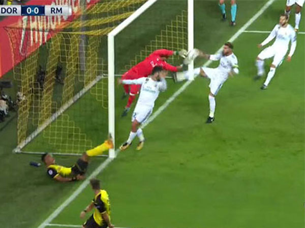Thủ quân của Real thừa nhận tình huống bóng chạm tay trong vòng cấm khi tham gia cản phá một pha tấn công của Dortmund.