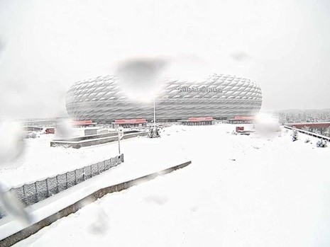 Sân vận động Allianz Arena gần như bị ''đóng băng'' do tuyết rơi dày đặc và trận đấu giữa Bayern Munich và Union Berlin ở Bundesliga sẽ bị hoãn lại.