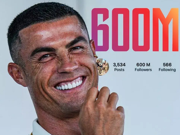 Cristiano Ronaldo vượt mốc 600 triệu người theo dõi trên Instagram, trở thành người đầu tiên đạt được con số đó trên mạng xã hội của Meta Platforms.