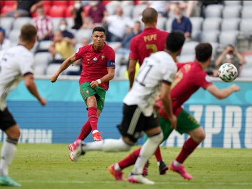 Bồ Đào Nha vượt lên dẫn trước nhờ bàn thắng của Ronaldo trong trận đấu với Đức ở bảng F EURO 2020. Tuy nhiên, đoàn quân của HLV Santos không thể đứng vững trước sức tấn công như vũ bão của Die Mannschaft và để thua ngược 2-4.