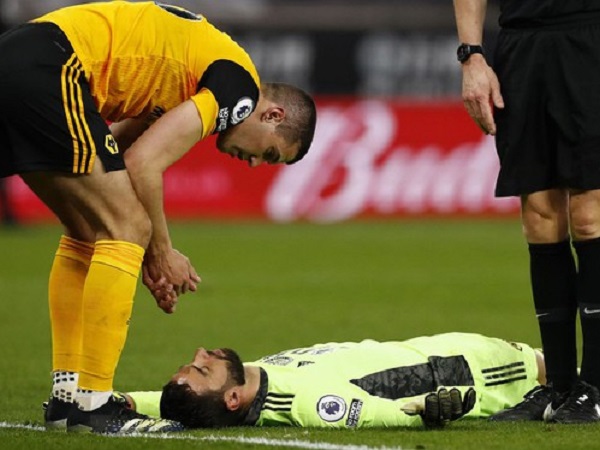 Thủ môn Rui Patricio va chạm mạnh với đồng đội ở đầu và phải thở oxy, trong trận Wolves thua 0-1 trước Liverpool rạng sáng nay (theo giờ Việt Nam).