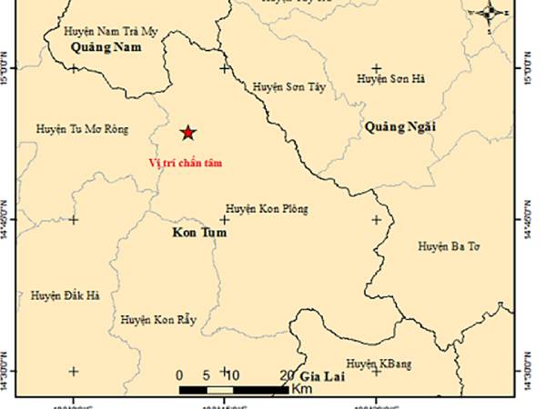 Lại xảy ra động đất 4,1 độ richter ở Kon Tum