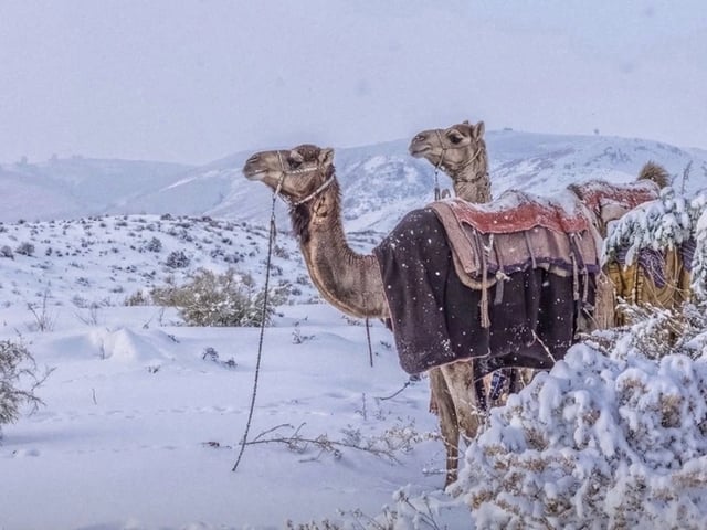 Hiện tượng thời tiết kỳ thú và hiếm gặp vừa xảy ra tại Saudi Arabia khi những vùng sa mạc vốn nổi tiếng với nắng nóng gay gắt bất ngờ được bao phủ bởi sắc trắng của tuyết.