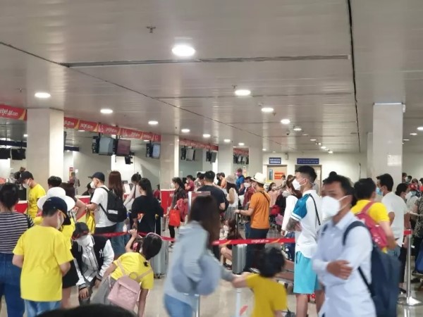 Người dân ùn ùn đổ về sân bay Tân Sơn Nhất để đi chơi lễ