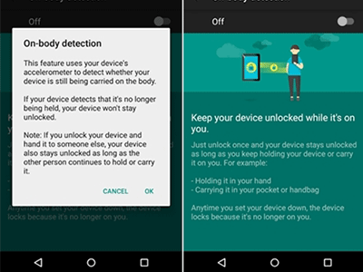 Google sắp tung ra tính năng bảo mật "on-body detection" cho phép smartphone Android tự động khóa lại khi người dùng không cầm máy trên tay hay bỏ máy trong túi quần/áo của mình.