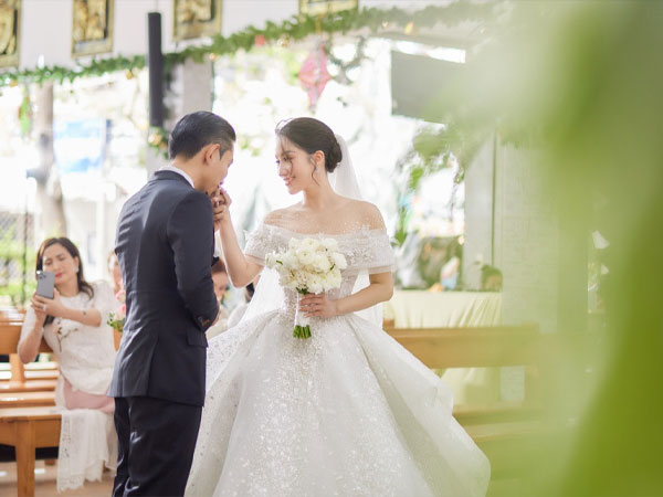 Sau lễ Thành hôn và ăn hỏi, Khánh Thi và Phan Hiển đã có buổi lễ thực hiện các nghi thức cưới tại nhà thờ.