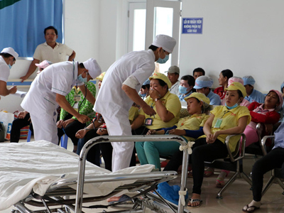 Hàng trăm công nhân nhập viện cấp cứu sau bữa ăn chiều. Một số công nhân nữ thậm chí ngất xỉu phải chuyển từ công ty đến bệnh viện