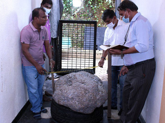 Giới chức Sri Lanka hôm 12/12 cho trưng bày khối đá sapphire xanh tự nhiên được họ mô tả là lớn nhất thế giới, nặng 310kg.