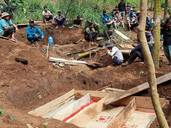 Sau tiếng nổ lớn, cả ngọn núi đổ ập xuống ngôi làng, 3 đứa trẻ đang chơi đùa trong nhà đã bị vùi lấp, chị Diệu chỉ kịp ôm đứa con gái 4 tuổi trên tay vừa chạy vừa khóc.