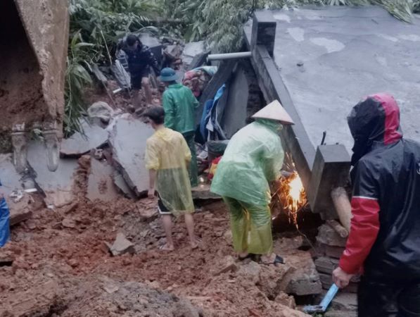 Khối lượng đất đá lớn từ trên đỉnh đồi sạt lở xuống, chôn vùi hoàn toàn ngôi nhà tại huyện Đà Bắc (tỉnh Hòa Bình), khiến 4 người tử vong, 1 người bị thương.