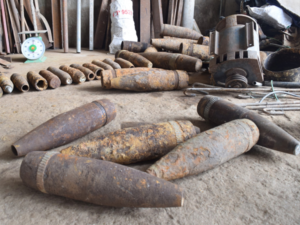 Kiểm tra một cơ sở thu mua phế liệu ở tỉnh Thừa Thiên – Huế, lực lượng chức năng phát hiện hàng chục vỏ đạn pháo các loại, trong đó có 1 quả còn nguyên đầu đạn.