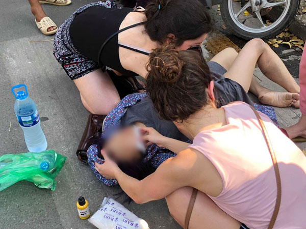 Hà Nội: Nghi say nắng, cô gái tự lao xe vào cột biển báo giao thông được 2 nữ du khách nước ngoài sơ cứu