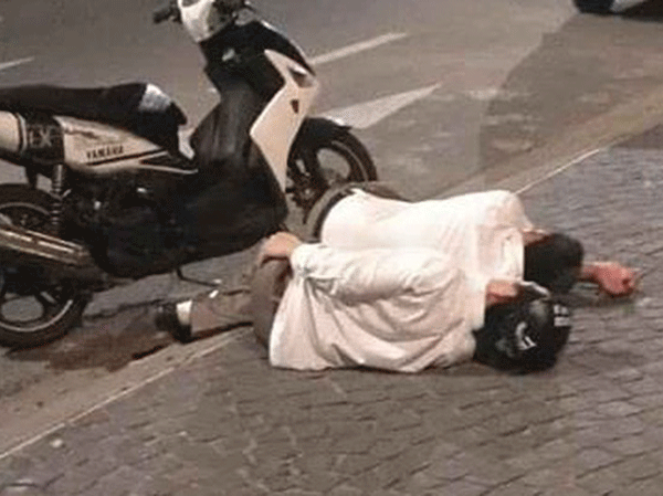 Giữa đường nhưng người đàn ông lại dựng xe rồi nằm với tư thế lạ khiến ai cũng xôn xao