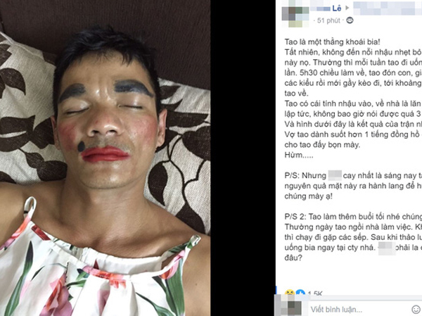 Để "trả thù" việc vợ bắt mình phục vụ, anh Xuan Zu đã dùng son và chì kẻ mày của vợ, thậm chí cả bút màu của con trai để tô lên mặt vợ, sau đó chụp lại ảnh để đăng lên mạng nhằm trêu chọc vợ, đồng thời khiến cô xấu hổ mà lần sau không dám uống say nữa.