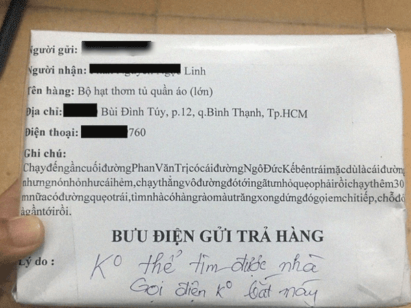 Đặt hàng xong vị khách này không nghe điện thoại khiến người giao hàng phải "tự lực cánh sinh" với dòng địa chỉ gây lú não.