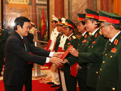 Ngày 10-12, Chủ tịch nước Trương Tấn Sang đã ký quyết định thăng quân hàm từ trung tướng lên thượng tướng cho 3 sĩ quan cao cấp của QĐND Việt Nam.