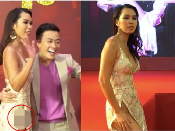 Chiếc váy xẻ cao táo bạo giúp Hà Anh khoe trọn đôi chân dài miên man cùng vóc dáng săn chắc sexy nhưng cũng khiến cô rơi vào tình huống hớ hênh bên Lương Mạnh Hải.