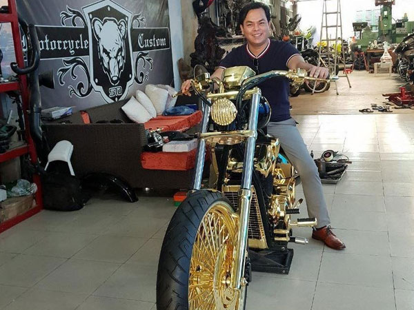 Người được mệnh danh đeo vàng nhiều nhất Việt Nam với số lượng lên đến 13 kg trên cổ vừa tậu thêm cho mình 3 chiếc môtô hàng độc được mạ vàng để thỏa mãn niềm đam mê.