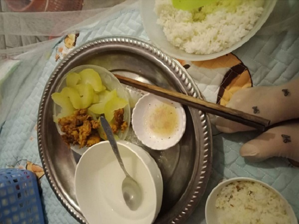 Mâm cơm cữ quá đỗi đạm bạc với lèo tèo vài miếng thịt và bí ngô được đăng tải trong hội nhóm nọ lại khiến chị em nào cũng xuýt xoa.