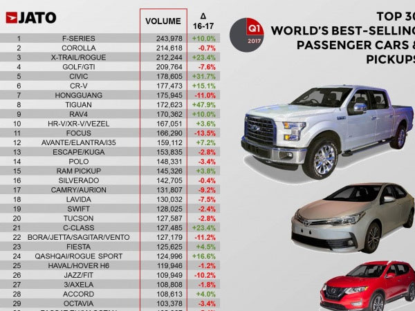 Nissan X-Trail và Toyota Corolla Altis là những mẫu xe bán chậm tại Việt Nam, tuy nhiên doanh số toàn cầu hết quý 1 của 2 dòng xe này lại đứng thứ 2 và thứ 3.