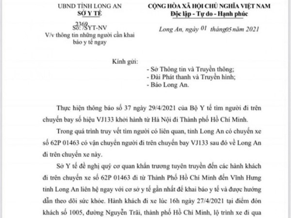 Một hành khách đi chung chuyến bay với bệnh nhân Covid-19 rồi từ TP HCM về Long An bằng xe khách có 16 người đi cùng.