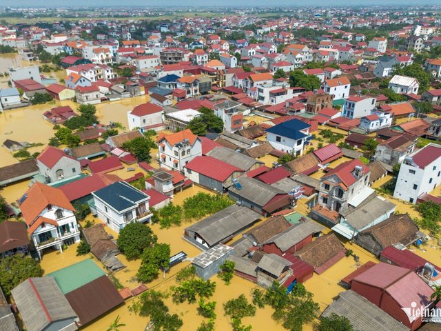 Lũ sông Cầu dâng cao khiến nhiều ngôi làng ở xã Xuân Cẩm, tỉnh Bắc Ninh chìm sâu trong biển nước, cuộc sống người dân đảo lộn.