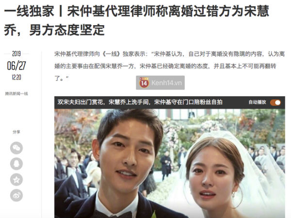 Trang 1Luật sư trả lời độc quyền báo Trung: 'Nguyên nhân ly hôn là do Song Hye Kyo, thái độ của Song Joong Ki luôn kiên định'