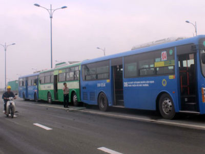 3 xe buýt đâm nhau liên hoàn, xa lộ Hà Nội ùn ứ