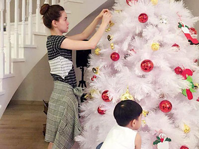 Hồ Ngọc Hà cùng con trai trang trí cây thông cho giáng sinh