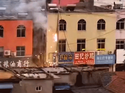 Những sợi dây điện cũ nát đã vô tình bị đứt gây ra tình trạng chập cháy tại thành phố Lâm Nghi, miền Đông Trung Quốc khiến nhiều người lo lắng.